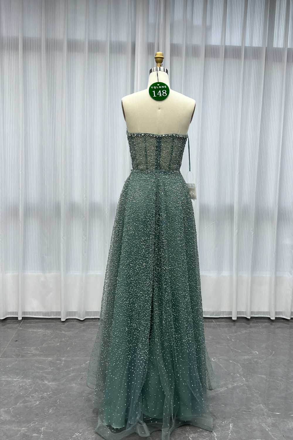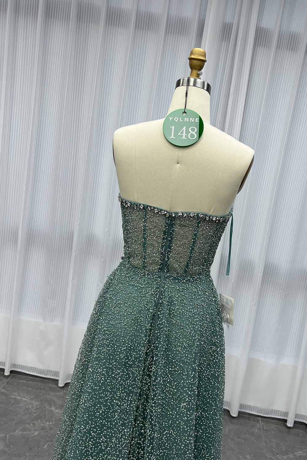 YQLNNE 0148 Black Glitter Crystals Long Prom Dress Aline