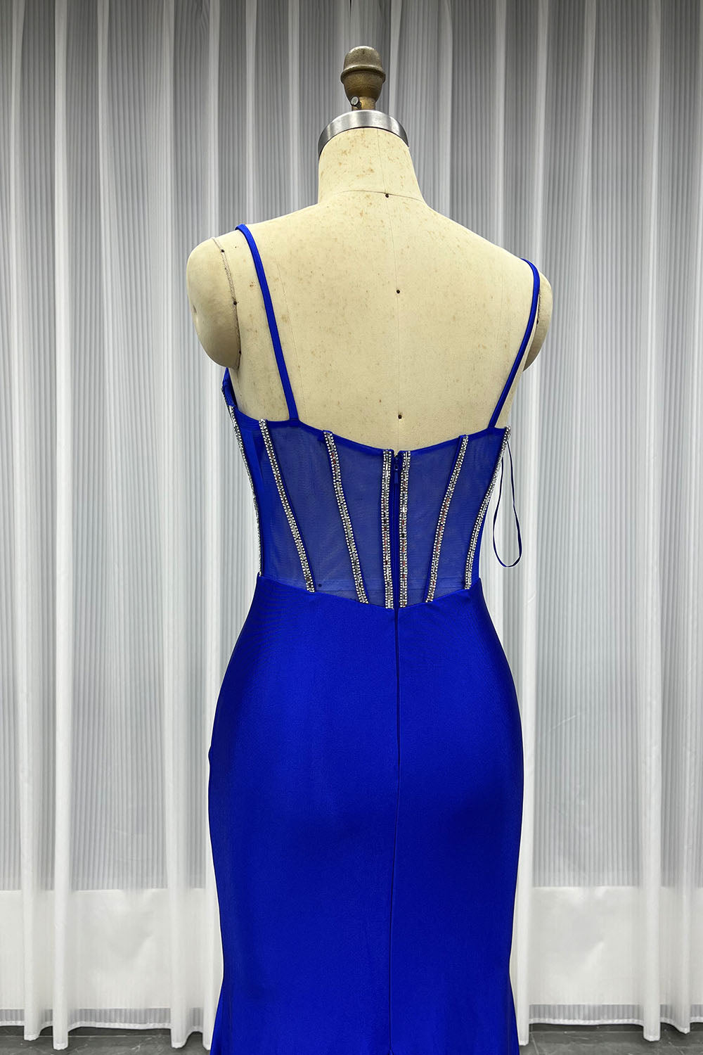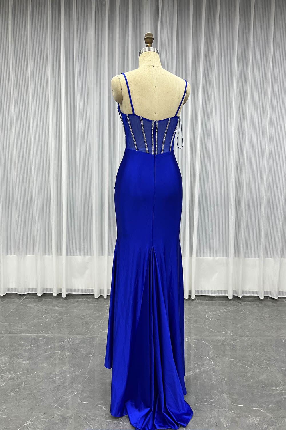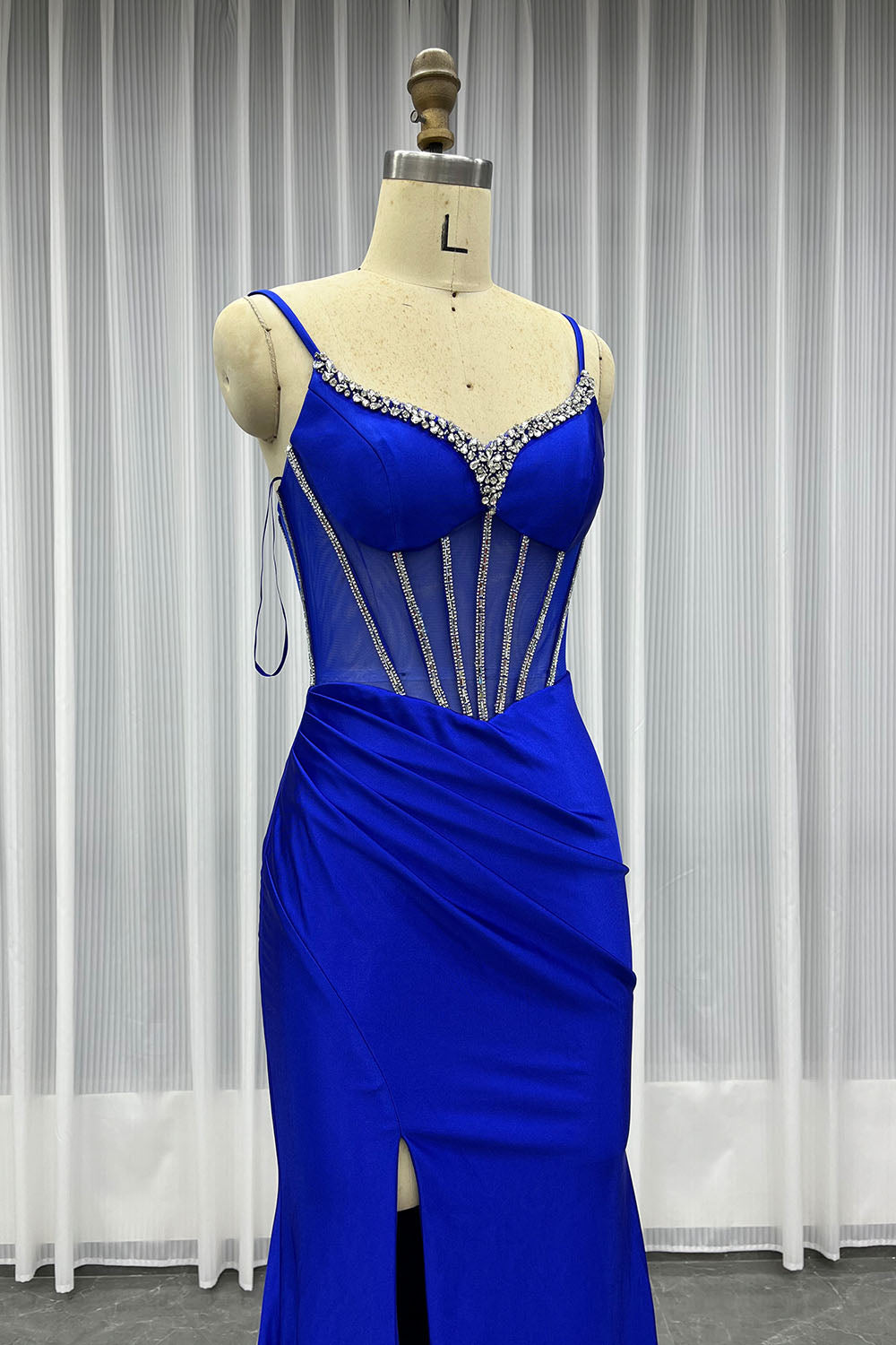 YQLNNE 015 Red Crystals Long Prom Dress Straps Satin Slit