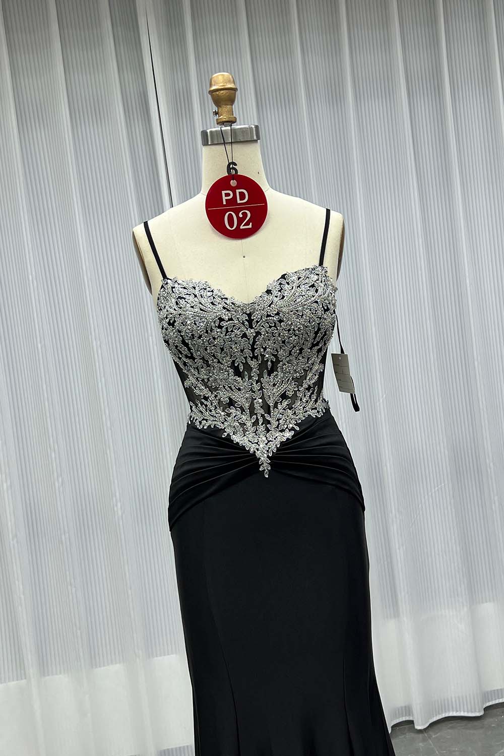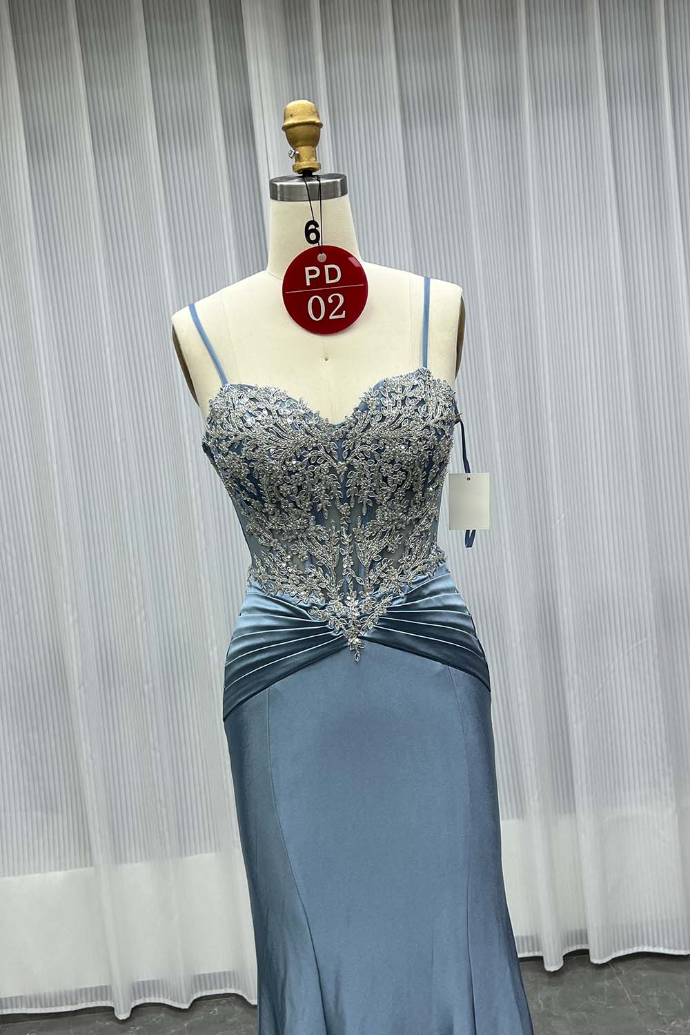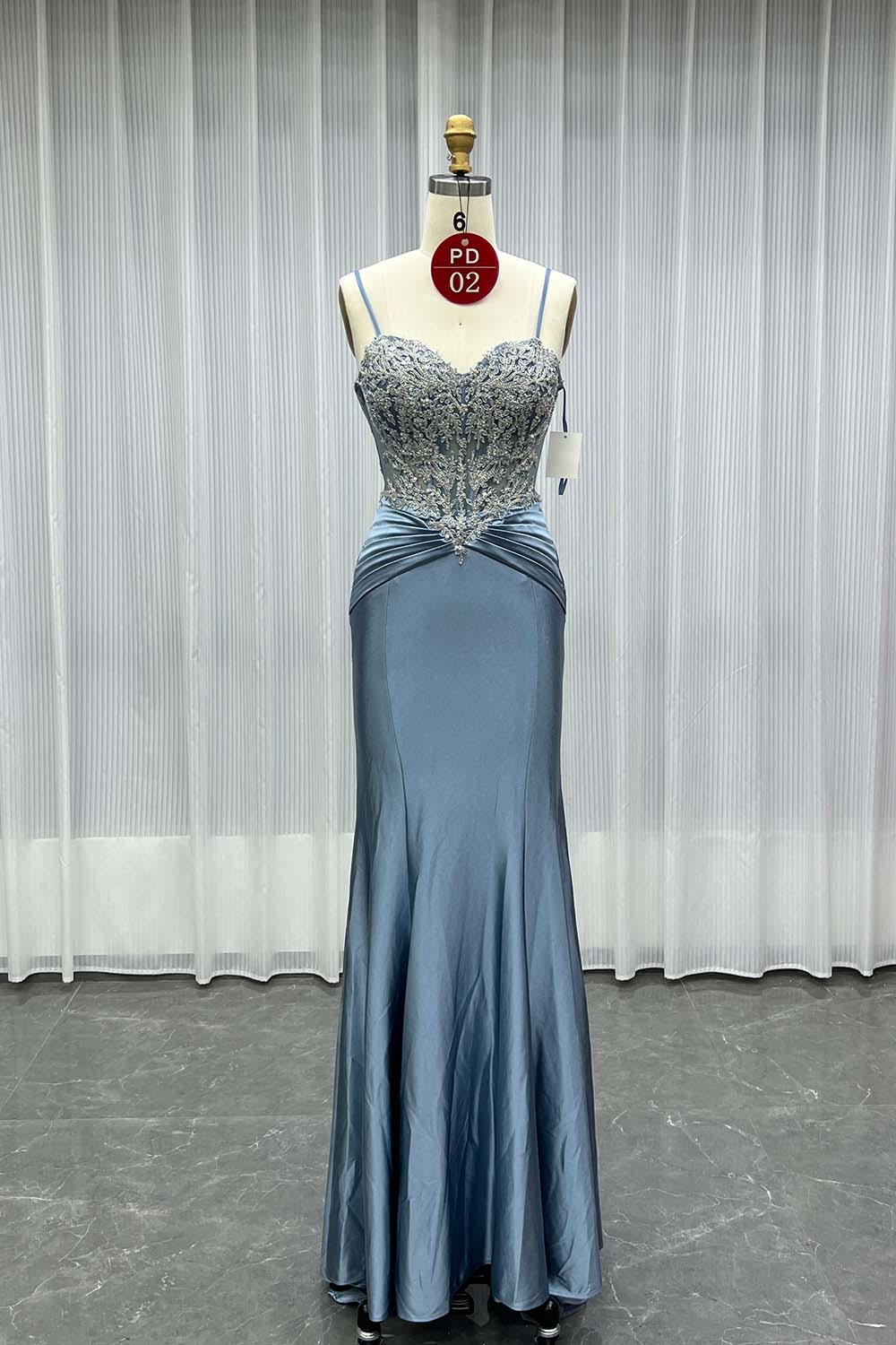 YQLNNE PD02 Red Satin Spaghetti Long Prom Dresses Mermaid