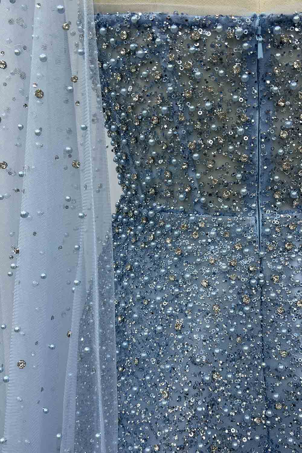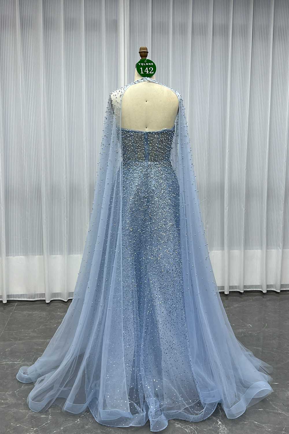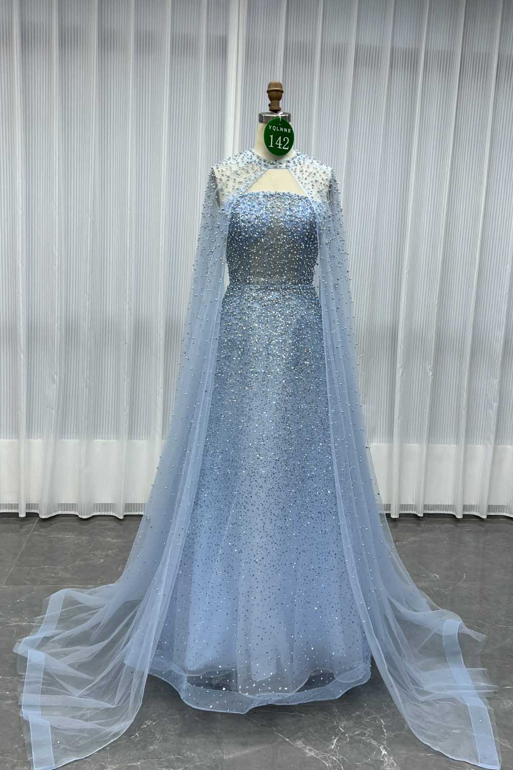 YQLNNE 0142 Rose Gold Ball Gown Evening Dress With Removable Cape Handmade Crystals Beaded