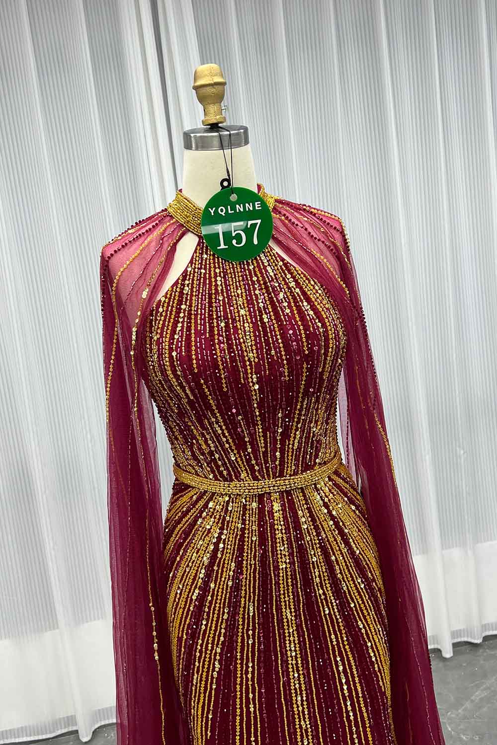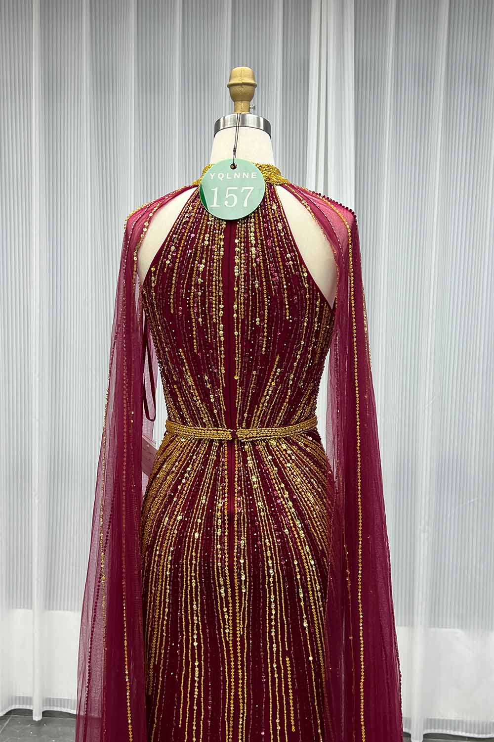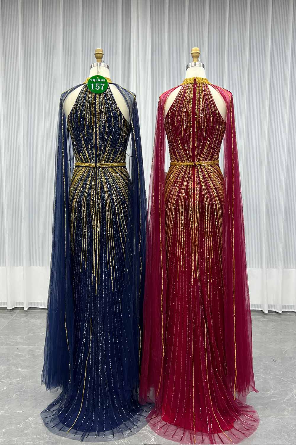 YQLNNE 0157 Navy High Collar Evening Dress With Handmade Crystals Beaded
