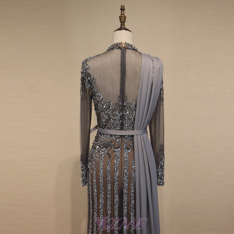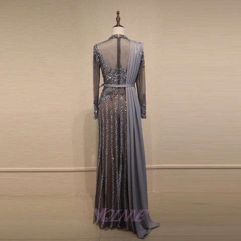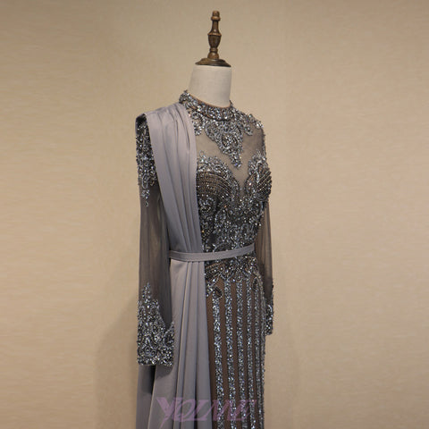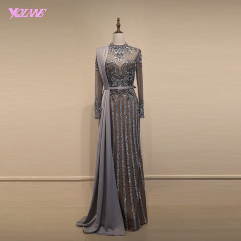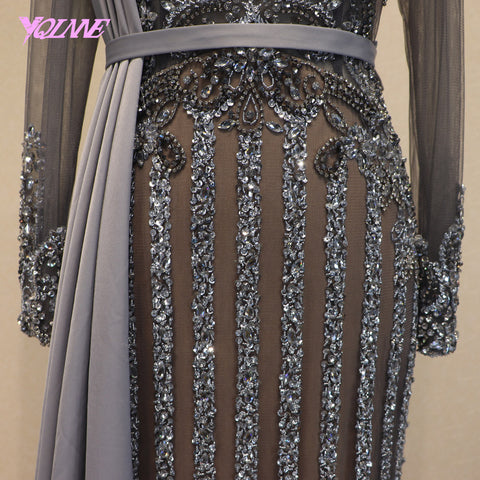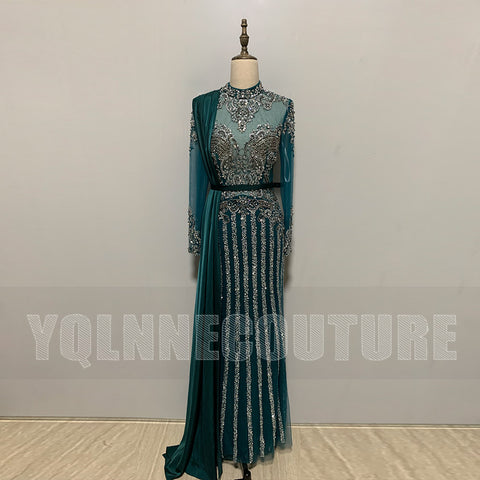 YQLNNECouture Muslim Rhinestones Evening Dresses High Neck Dubai Long Sleeve Mermaid Evening Gown Women Party Dress