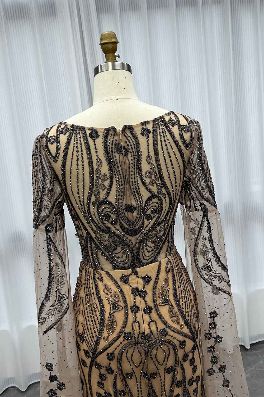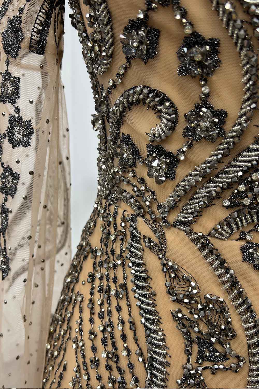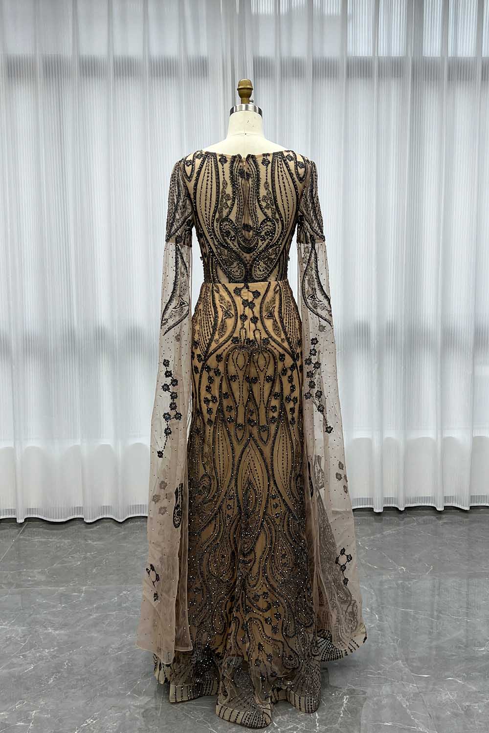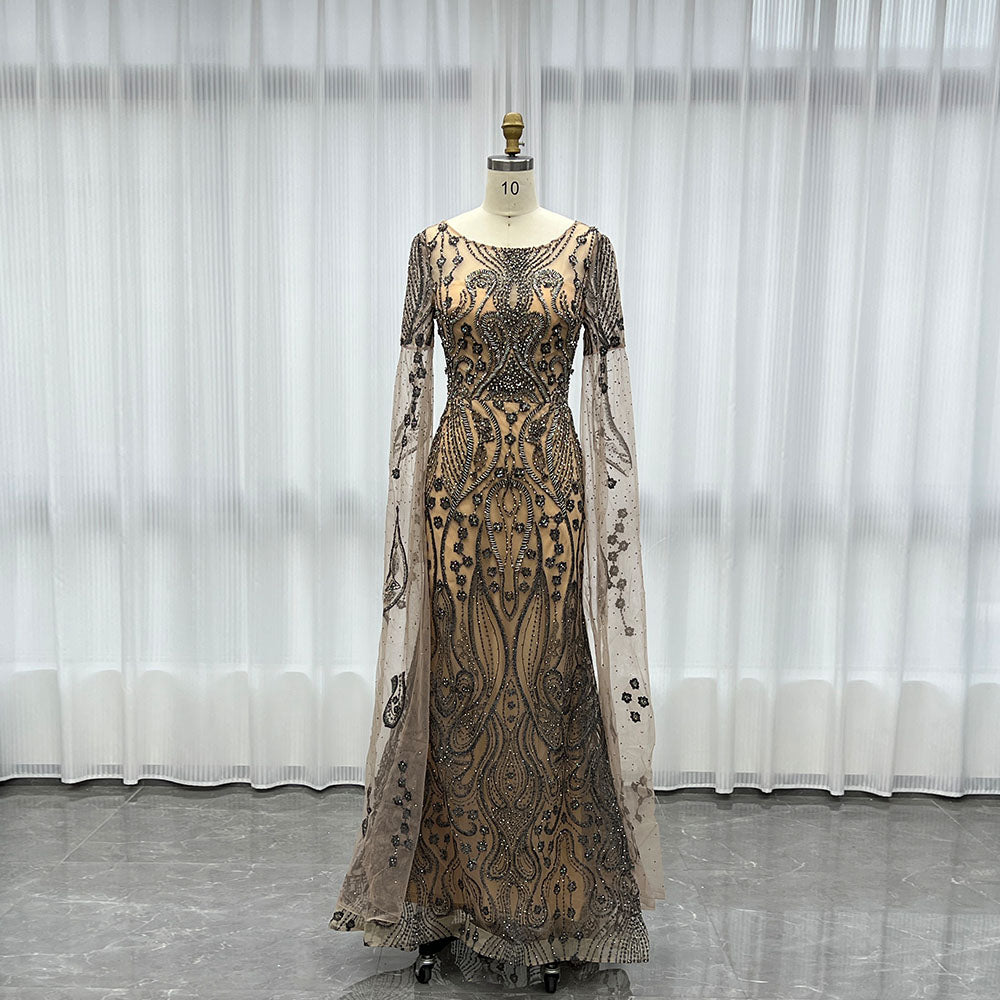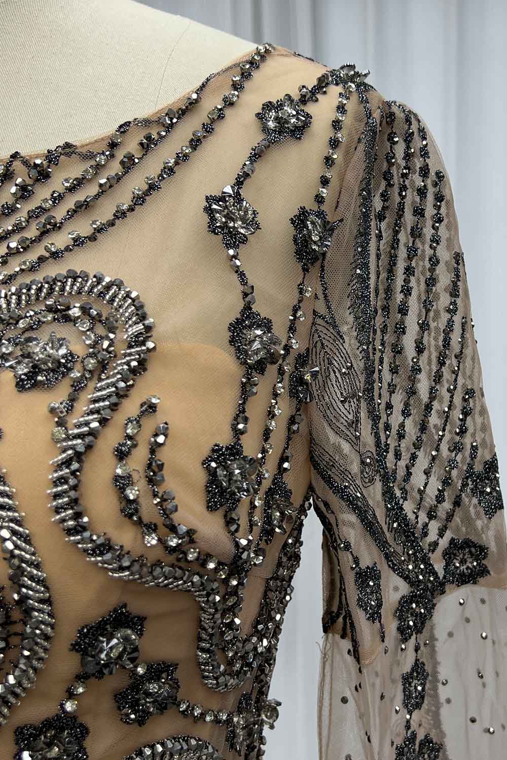 YQLNNE Modest Gray Nude Evening Dress With Cap Sleeves